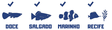 Para obter um resultado ideal na qualidade da água do seu aquário, recomendamos equipar o filtro com materiais filtrantes Premium das marcas AZOO, aquavitro, Seachem, ISTA e DYMAX.