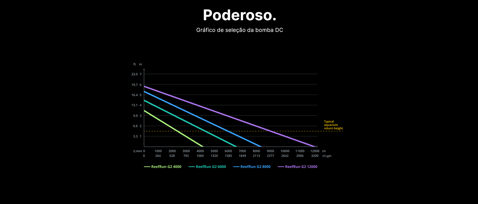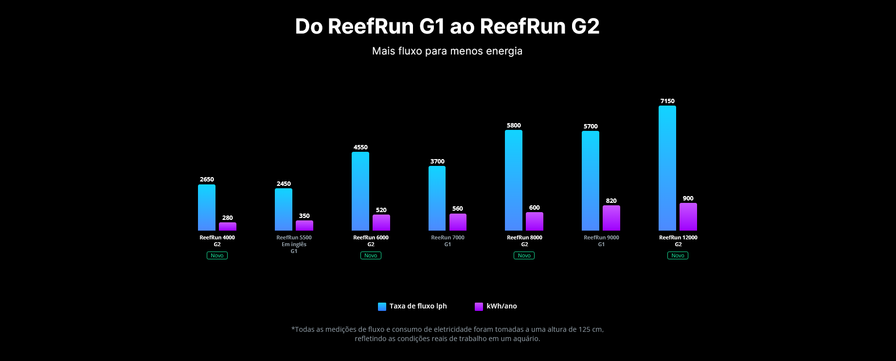 Os modelos ReefRun G2 variam entre 4.000 L/h e impressionantes 12.000 L/h.